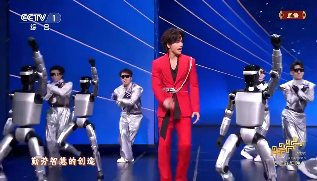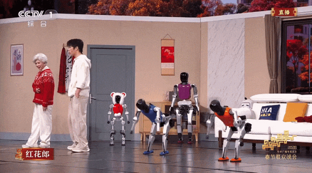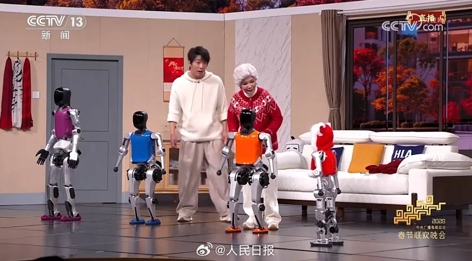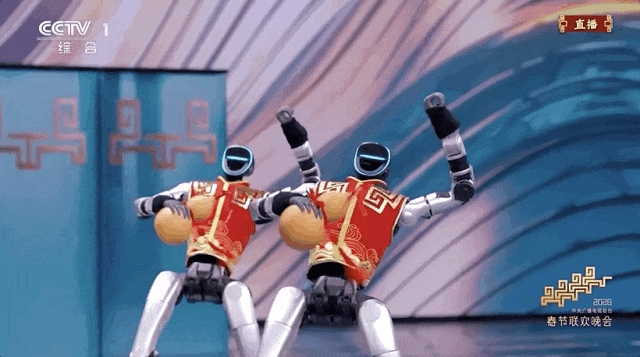 还有网友发现,其中的一个机器人是不是模仿了往年撒贝宁的造型。
