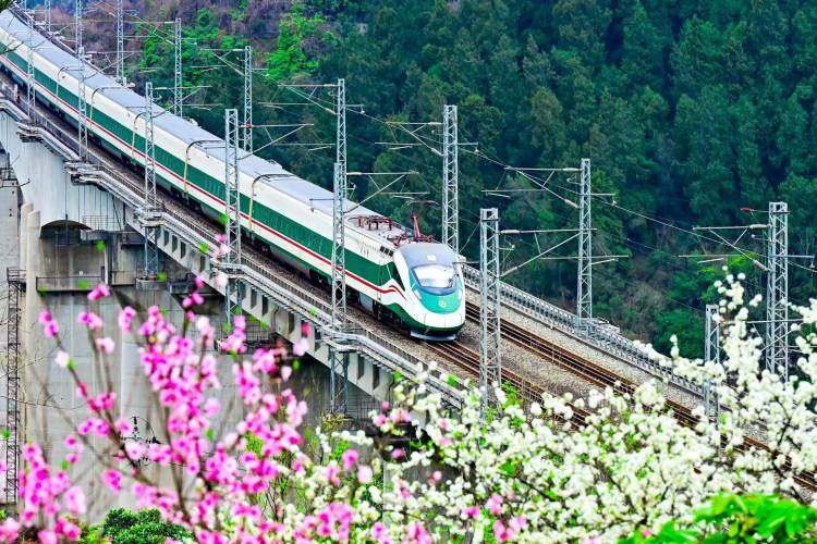 假期期间,四川雅安春茶嫩芽吐露新绿,高铁穿行其间宛如驶入山水画卷;重庆巫山梨花洁白如雪铺展出“千树万树梨花开”的浪漫景致;贵州从江的加榜梯田云雾缭绕;依托高铁1—3小时交通圈线路,高铁成为西南地区旅客春日出行首选,实现“说走就走,景在眼前”的便捷旅途。成渝间日均开行列车220列,成雅铁路日均开行列车111列,成贵高铁日均开行列车75列,14列川渝黔环线列车带你“转个圈圈”去踏青,极大方便了短途旅客出游。