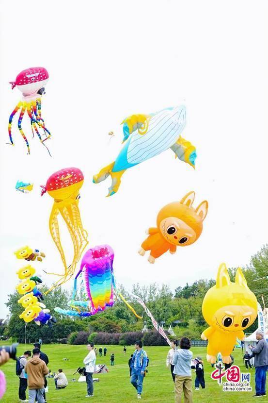 巨型“章鱼”“葫芦娃”“labubu”“熊猫”等软体风筝遨游天际,夜光风筝点亮草原夜空,运动风筝团队在空中勾勒出“爱心”“回旋”等高难度造型,引来观众阵阵惊叹。赛事不仅好看,更好玩——“体育+文旅”深度融合,带动黄陂旅游热度一路飙升。
