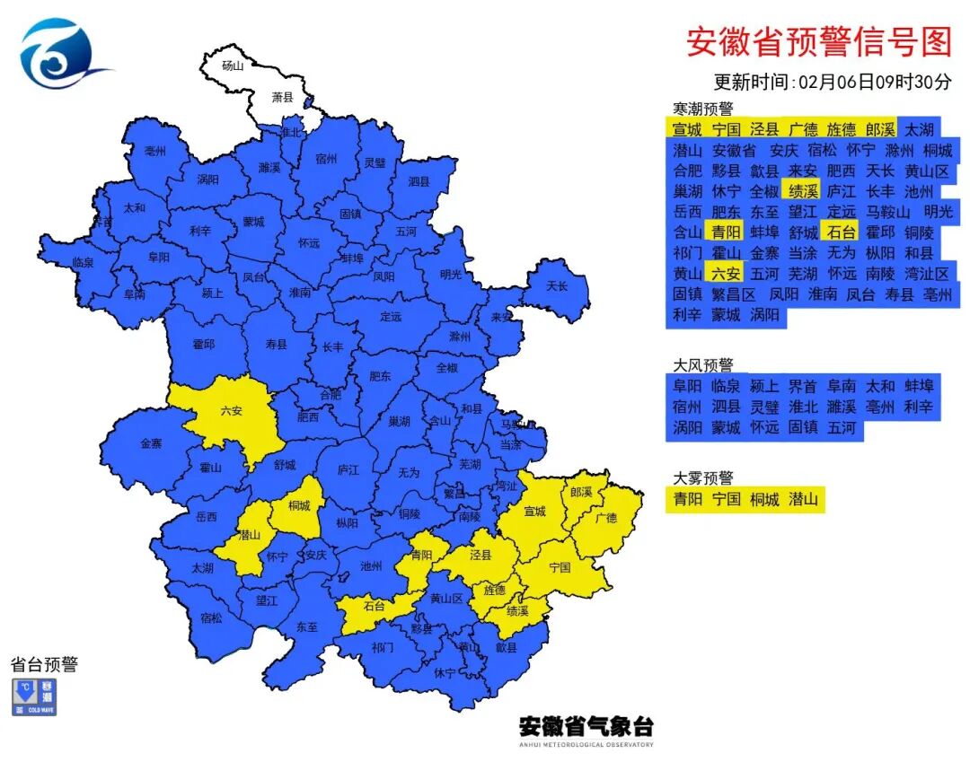 具体到安徽,目前,多地已发布寒潮预警,降温明显并伴有大风,湿冷感显著。